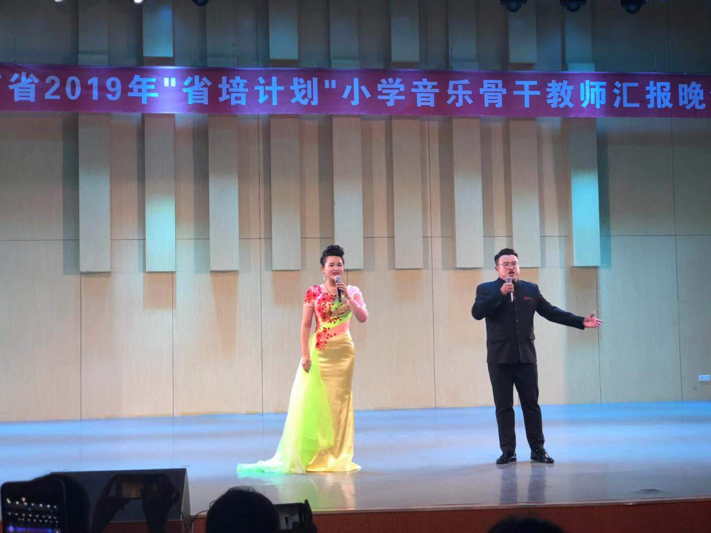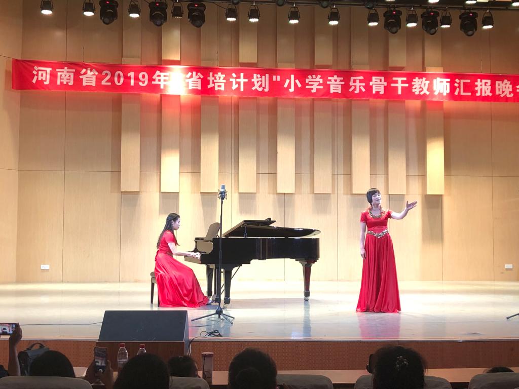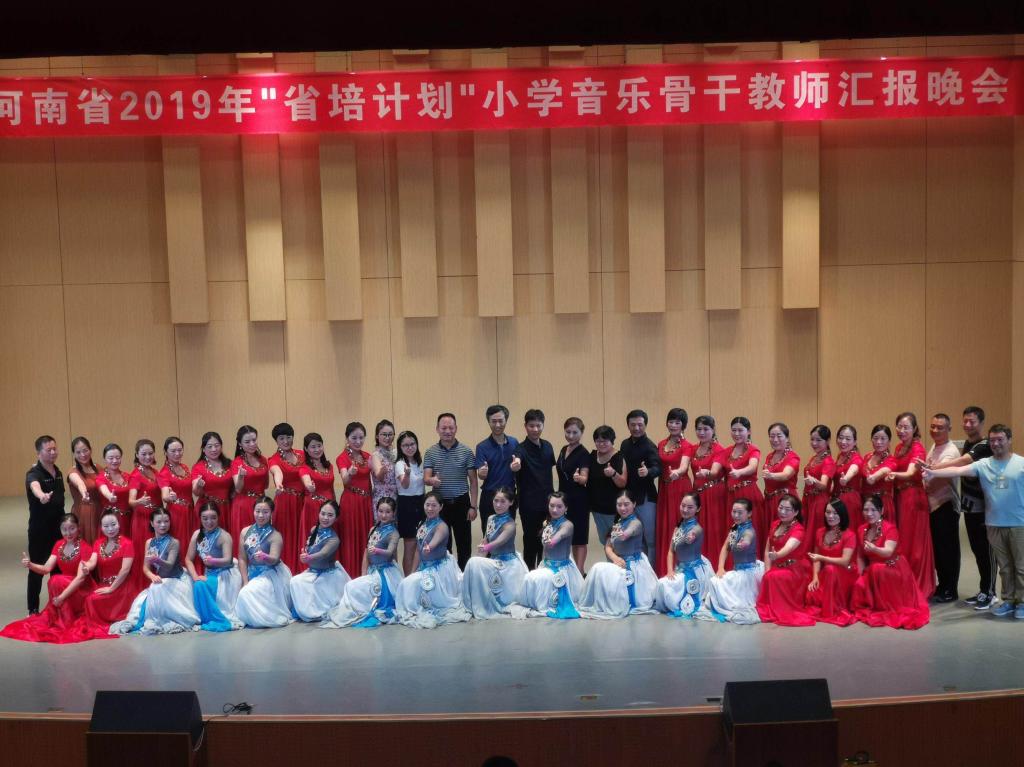 在公司喜迎建国70周年之际,8月14日,48名来自河南省各市县的“省培”学员欢聚艺术楼音乐厅,举行河南省2019年“省培计划”小学音乐骨干教师汇报晚会。tyc33455cc太阳集团副经理陈新宇、党委副书记郭振,党委委员邬百宁,省培班主任牛媛媛、张莹莹与二百多名观众共同观看演出。