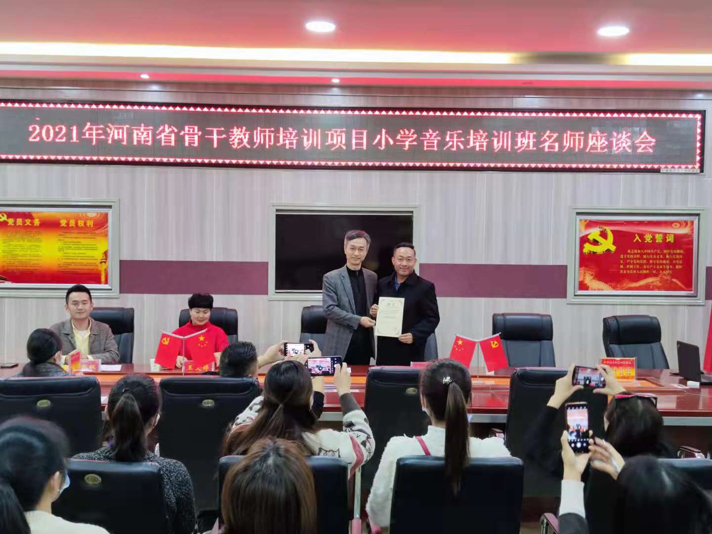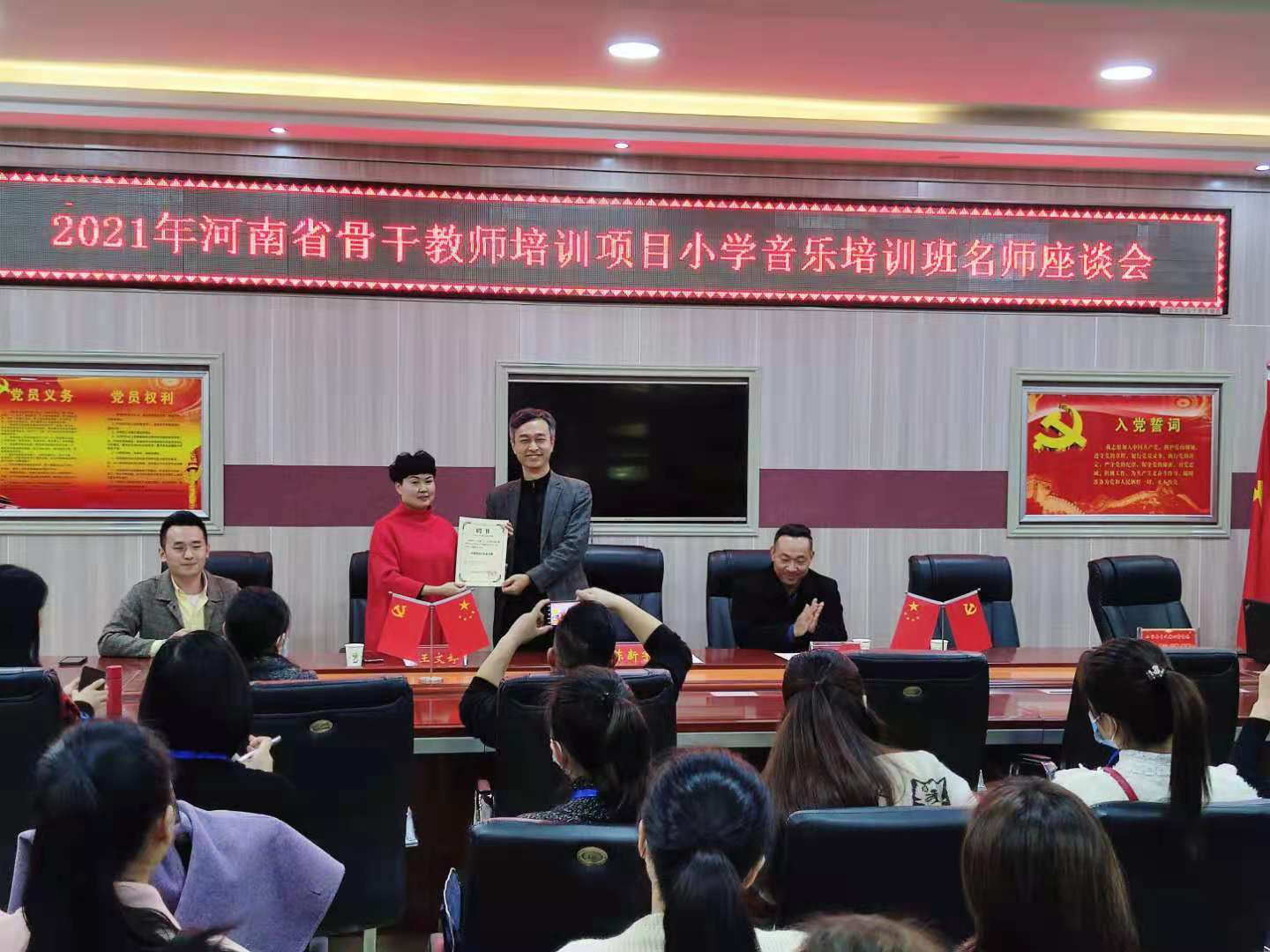 10月23日下午,“2021年河南省骨干教师培训项目小学音乐培训班”名师座谈会在艺术楼会议室举行。河南省名师李大强、王文婷,tyc33455cc太阳集团经理陈新宇,省培专业班主任梁凯枫博士参加了座谈会。座谈会由梁凯枫博士主持。