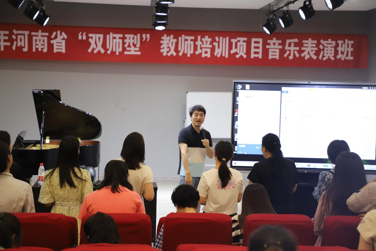 7月21日,周骏以《奥尔夫美育在中高职音乐与舞蹈教学技能中的理论与实践》为题在艺术楼八音讲堂为音乐表演专业“双师型”学员带来了精彩的一课。