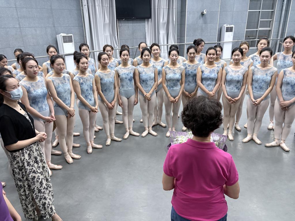 本次活动的核心在于为公司芭蕾专场《翎羽溯光》提供高水平专业指导。方锡玲教授以其深厚的艺术造诣和丰富的舞台经验,对专场节目的整体构思、演员的技术细节及艺术表现力进行了细致指导。她亲自示范关键动作,针对芭蕾的规范性与情感表达深度给予精准点拨。尤其在对《白毛女·大红枣儿甜又香》中融合革命叙事与现代芭蕾语汇的重要舞段进行指导时,她强调了肢体语言的爆发力与信念感的内在统一,有效提升了节目的艺术感染力与思想深度,师生深受启发。