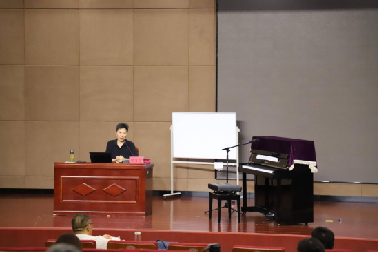 7.25日,河南艺术职业公司音乐公司邬百宁副教授在光山县为本次“双师型”教师培养培训音乐表演班学员讲授《作品表达维度下的艺术指导实践》