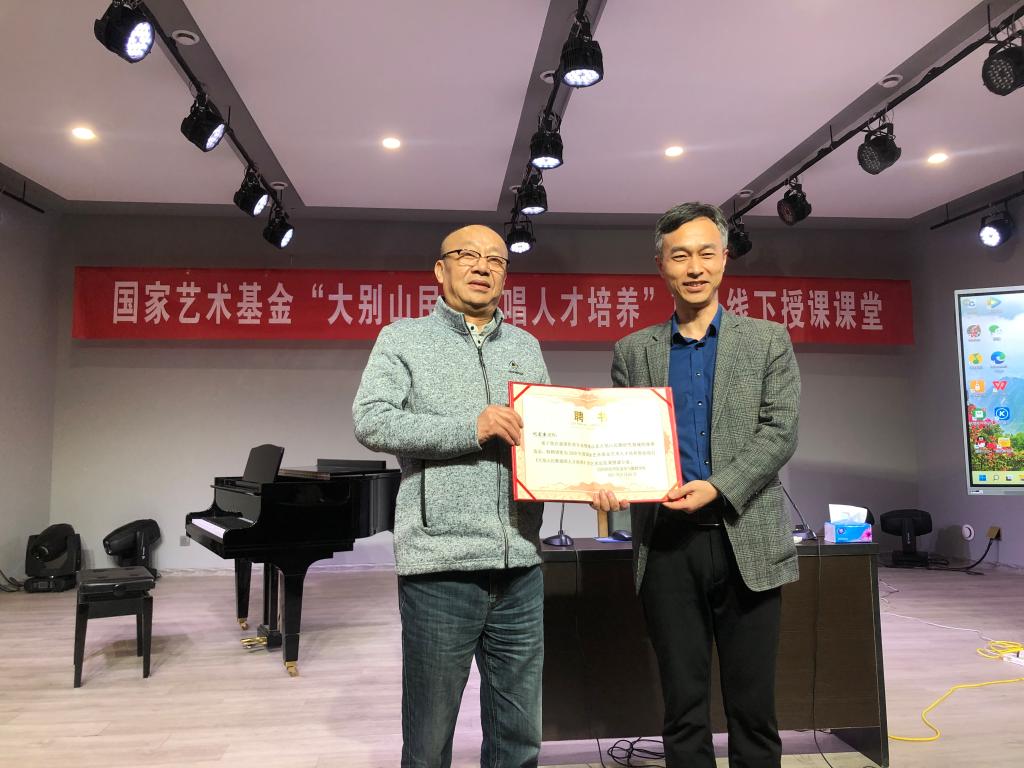 3月14日下午,国家艺术基金“大别山民歌演唱人才培养”线下授课课堂在公司tyc33455cc太阳集团一楼八音讲堂如期进行。项目合作方艺术总监、国家一级作曲、信阳市音乐家协会刘宏奎主席应公司邀请,进行线下教学。