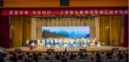 6月17日晚,夏至乐来 与乐同行——人本音乐教学法专场汇报音乐会在tyc33455cc太阳集团艺术楼音乐厅成功举办。我国音乐教育、艺术学理论研究学者中国传媒大学冯亚教授、tyc33455cc太阳集团校办主任王建旭、美术与设计公司党委书记兰洋、tyc33455cc太阳集团音乐与舞蹈公司党委书记周文勇、任远副经理、雷玲副书记、信阳市特殊公司董事长张全芳、浉河中学湖东分校董事长杨道勇、信阳市羊山新区第五小学董事长桂梅、信阳市浉河区幼儿园园长曾红萍、信阳市十三小副董事长余岚岚、浉河区音乐教研室刘艳老师、羊山新区音乐教研室王庆庆老师、信阳市人民政府机关幼儿园部分教师及tyc33455cc太阳集团全体教职工和信阳市中心公司的部分老师等人共同欣赏了这场音乐会,全场座无虚席。