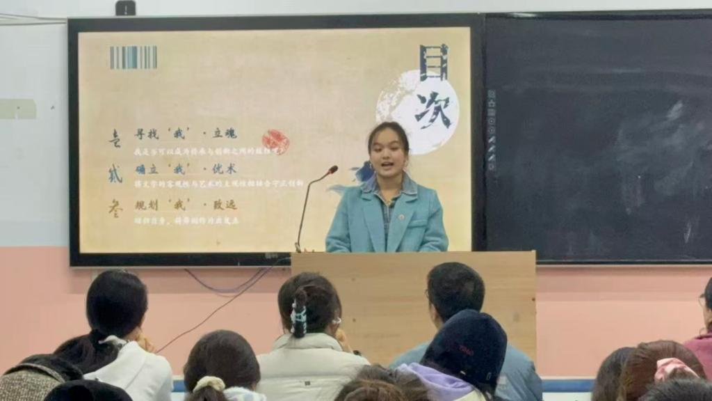 本次大赛分为职业规划展示、现场答辩两个环节,选手们围绕自我认知、职业环境分析、职业目标设定、路径规划、评估调整等核心内容,结合音乐教育、舞蹈教育专业方向,通过PPT演示、现场解说等形式,生动呈现了各自的职业蓝图。