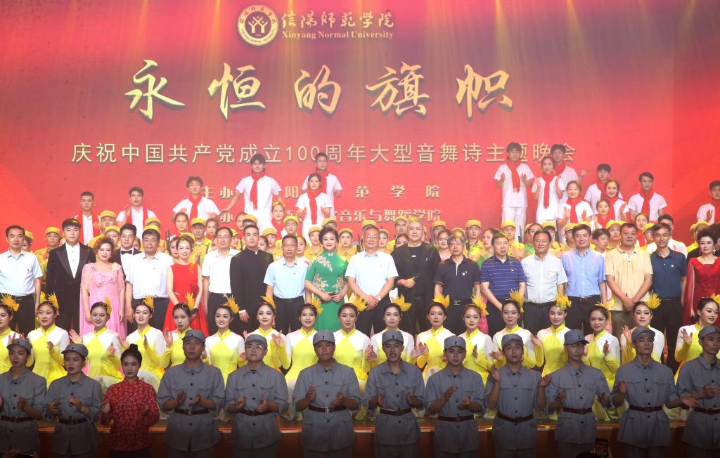 此次主题晚会是公司邀请省内外著名创作团队量身打造的建党百年献礼盛宴,主题鲜明,内容丰富,涵盖独唱、合唱、舞蹈、歌舞、器乐、朗诵、多媒体及影视历史资料等多种艺术载体,通过“音、诗、歌、舞”四位一体的独特表演形式,生动讲述了中国共产党团结带领全国各族人民,不断从胜利走向胜利,实现了中华民族从站起来、富起来到强起来的光辉历程,彰显了公司全体师生紧紧团结在党中央周围,共赴新征程、再创新辉煌的坚定信念。晚会在大提琴独奏《国际歌》中拉开序幕,朗诵《血色湘西》《伟大的转折》《抗战烽火》《伟大的抗美援朝》《向雷锋同志学习》《春天的故事》《不忘初心》《百年夙愿》引领观众穿越时空,重温中国共产党走过的百年历程,热情讴歌党的丰功伟绩,生动表达了青年员工坚定跟党走、奋进新时代的决心;舞蹈《红军歌谣》《桂花飘香》、视频讲解《跃进大别山》,全景式再现了大别山革命斗争历史,抒发了对革命英雄的崇高敬意,生动地展现了“28年红旗不倒”的大别山革命精神;歌舞《我们的生活充满阳光》《幸福中国一起走》将爱国之心融入歌舞当中,将祖国的辉煌成就凝练于乐曲之中,用青春之音向祖国母亲表白;合唱《抬头望见北斗星》《在太行山上》《我的祖国》唱出了中国共产党如北斗星一样,指引中华民族百年的前进方向,带领全国各族人民共筑伟大中国梦,向着中华民族的伟大复兴昂首迈进;独唱《山丹丹开花红艳艳》《唱支山歌给党听》《阳光路上》《入党申请书》《向往》在音乐的旋律中感悟波澜壮阔的建党历程,抒发了全体师生热爱党、听党话、颂党恩、跟党走的真挚情怀;晚会在歌舞《再一次出发》中圆满落幕。演出结束后,校领导亲切慰问了全体演职人员并合影留念。
