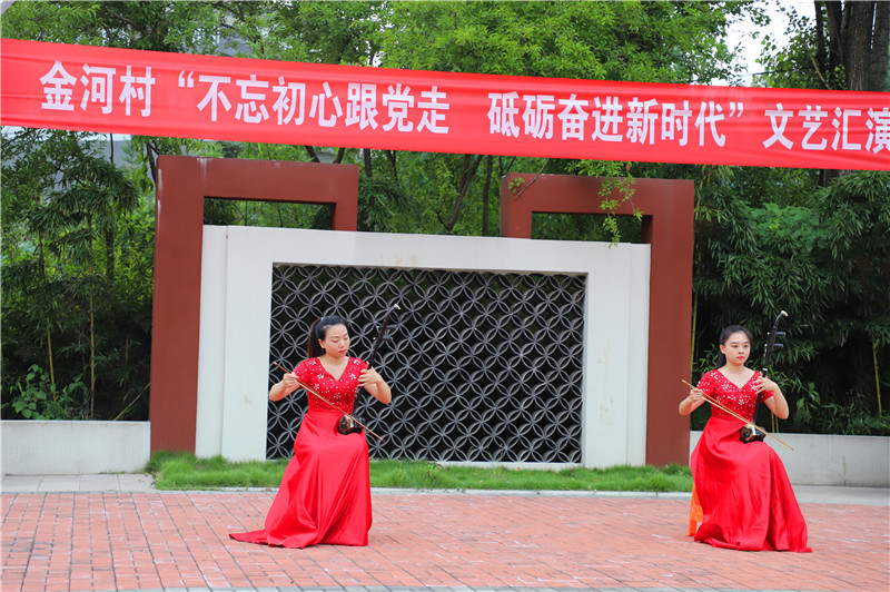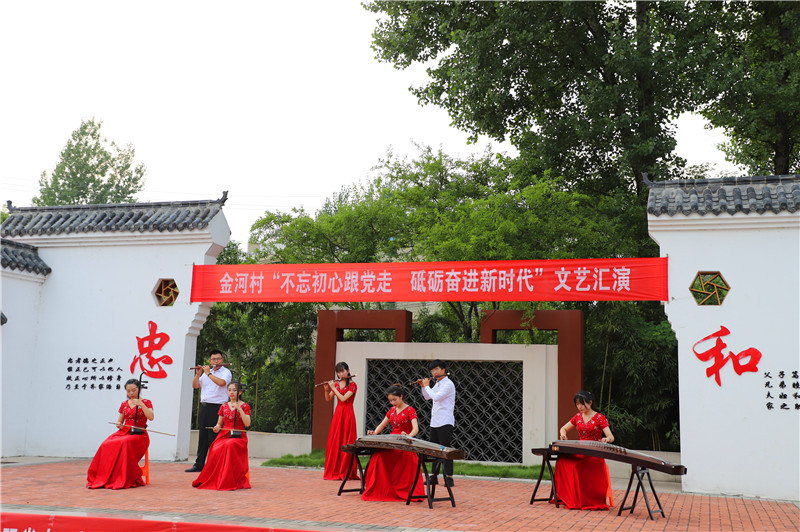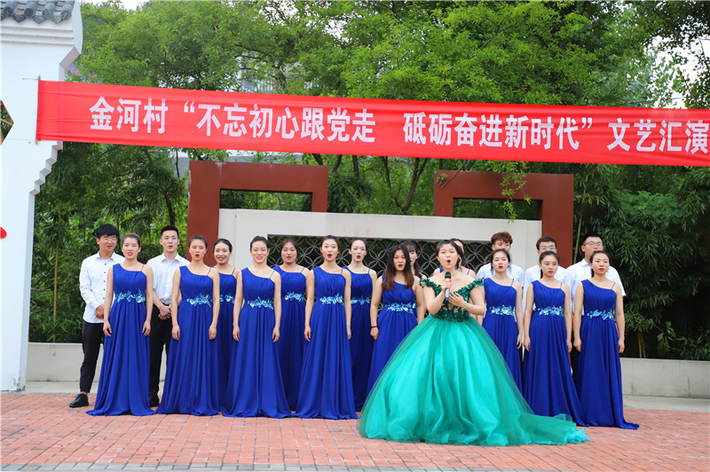 7月6日晚,文艺团在金河村文化大舞台举行“不忘初心跟党走 砥砺奋进新时代”文艺汇演,充分展示了公司学子的艺术风采和蓬勃活力。演出受到新集乡政府的大力支持,该乡党委书记范家明、金河村领导班子和村民一起观看了演出。晚会上同学们载歌载舞,精心准备了《欢笑的日子》、《山丹丹开花红艳艳》、《新赛马》、《我和我的祖国》、《梦中的额吉》、《不忘初心》等10个节目,涵盖了舞蹈、器乐、民歌、流行音乐等。演出精彩纷呈、引人入胜,热情讴歌了党的好政策,歌唱了美丽乡村新变化,传递了文明新风尚和社会正能量。台上台下互动连连,营造了浓厚的艺术氛围,为广大农民群众送上一道文化盛宴。