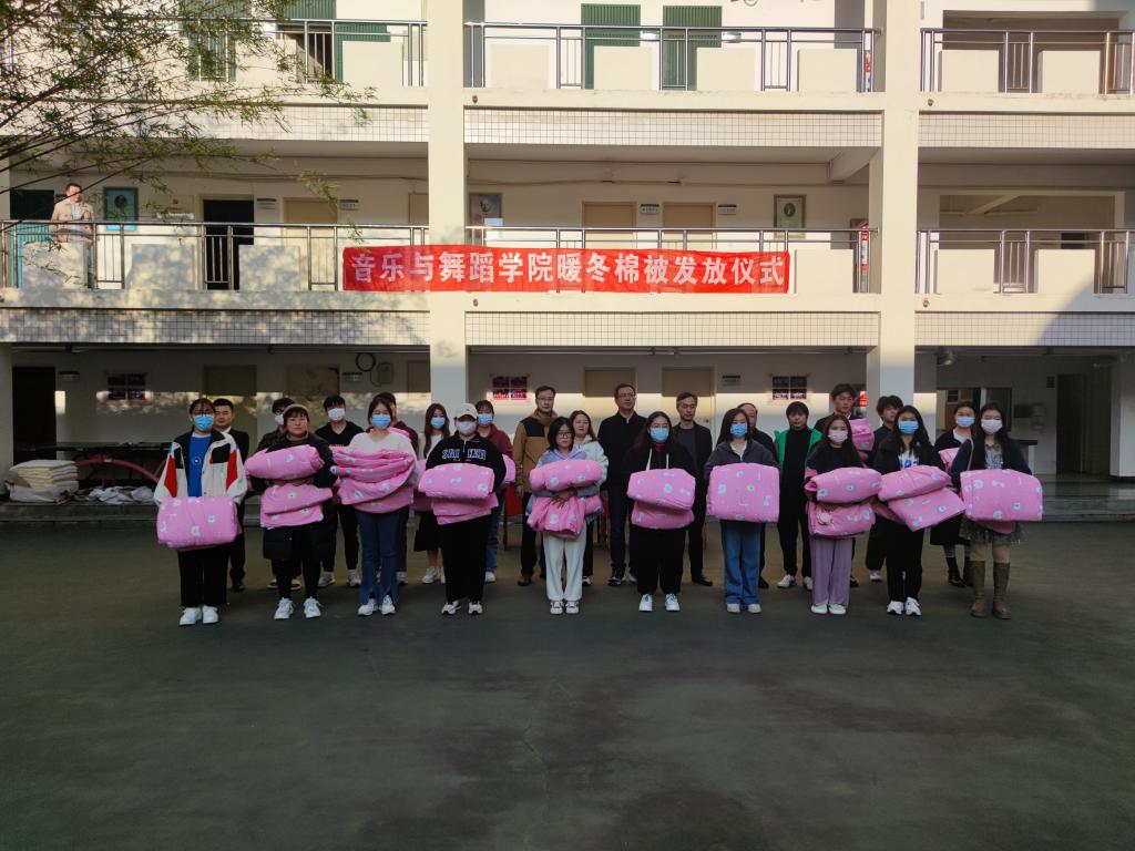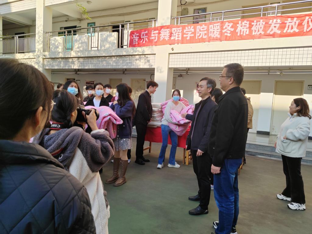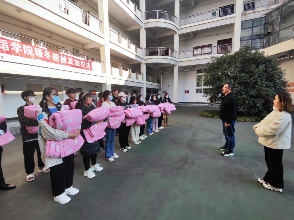 爱心棉被御寒冬,资助育人暖人心。11月25日,tyc33455cc太阳集团在艺术楼举行冬日送温暖爱心棉被发放仪式,党委书记周文勇、经理陈新宇、副经理任远、副书记雷玲、公司辅导员、班主任为同学们发放爱心棉被。