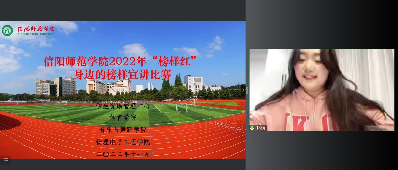 为落实国家资助政策,充分发挥身边青年榜样的先进导向作用,进一步加老员工资助宣传力度,加强员工资助育人功能。2022年12月1日由员工处资助中心统一规划,tyc33455cc太阳集团、体育公司与物理电子工程公司共同筹办的“榜样红·身边的榜样”宣讲活动通过线上会议顺利举行。由国家奖学金获奖人传媒公司杨乔丹、信阳师范公司自强之星数学与统计公司曾一凤、信阳师范公司校园明星外国语公司田润丰3位宣讲人以及公司200余名员工代表共同参与此次活动。活动由张馨月主持。