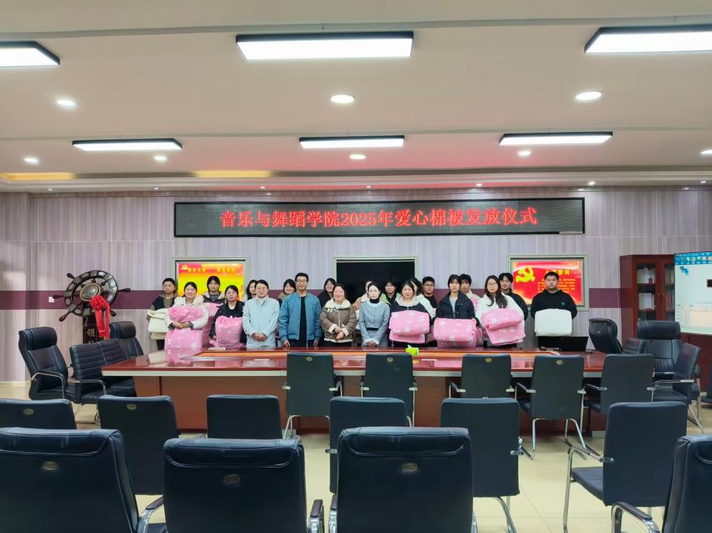 11月25日下午,tyc33455cc太阳集团“寒冬暖人心”棉被发放仪式在艺术楼三楼会议室举行,公司党委副书记雷玲,辅导员曹阳,杨文倩,李佳旭,邹轶卿,肖一凡老师和30名员工代表参加发放仪式。