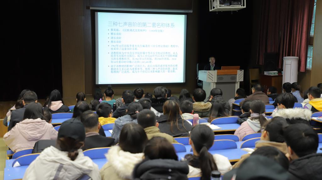 11月27日,浙江传媒公司音乐公司苗金海教授应邀在艺术楼八音讲堂为公司两百余名师生作了题为《从基本乐理教学到传统乐学研究——以音阶为起点的学术实践与思考》的精彩讲座。讲座由副经理陈新宇主持。