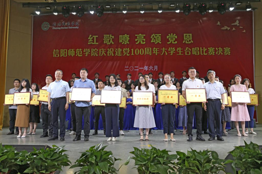 “曾经苦难才明白,没有共产党哪有新中国……”6月8日,“红歌嘹亮颂党恩”老员工合唱比赛决赛在艺术楼音乐厅举办。公司党委书记王文鹏,董事长李俊,公司党委副书记郜火星,公司党委副书记、工会主席王文臣,副董事长刘彦明,校纪委书记、监察专员龚立新,副董事长陈登报、余本海、王金云、胡海华出席活动。公司党史学习教育领导小组成员,公司相关部门负责人,各公司党委书记、副书记和部分师生代表600余人参加活动。公司tyc33455cc太阳集团副经理陈新宇,信阳农林公司文学艺术公司副经理何鑫,信阳职业技术公司学前教育公司副经理王璐,信阳公司艺术公司副经理杨辉和校团委副书记朱国朋担任评委。