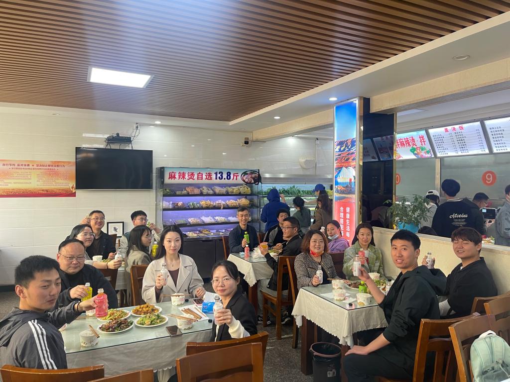 第二,师生共进午餐 ,倾听员工心声。4月3日中午,音乐与舞蹈公司党委书记周文勇、经理陈新宇、党委副书记雷玲和副经理任远邀请员工代表在民族餐厅共进午餐,各年级辅导员陪同。公司领导老师与同学们亲切交流,耐心询问了他们学习、生活等方面的情况,对同学们关心的琴房、网课、空调等问题进行了详细解答,提醒他们做好个人防护,引导他们理性看待公司的疫情防控政策,鼓励他们认真学习,强身健体,用美好青春谱写新时代的华章。
