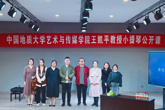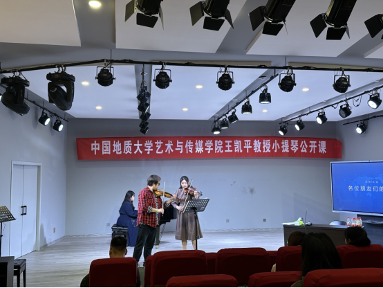 4月26日上午,应tyc33455cc太阳集团邀请,著名小提琴演奏家、中国地质大学(武汉)艺术与传媒公司教授、博士生导师王凯平在公司八音讲堂举办小提琴公开课,器乐教研室弦乐专业师生共同聆听了课程。