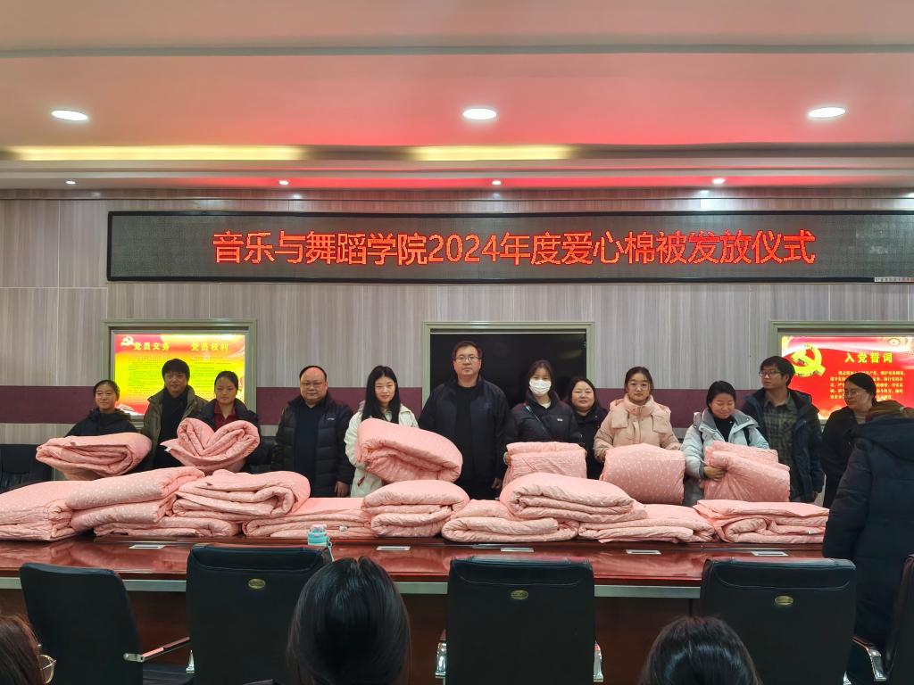 12月17日下午,tyc33455cc太阳集团“寒冬送温暖”爱心棉被发放仪式在艺术楼三楼会议室举行。公司党委书记周文勇、副经理任远、党委副书记雷玲,经理助理、舞蹈教研室主任刘小雷以及全体辅导员和30名员工代表参加发放仪式。