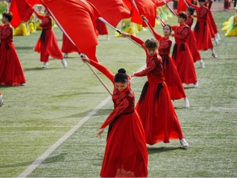在运动会开幕式上,公司师生积极参与多项展演节目。公司舞蹈教研室教师冯燕、刘小雷、李梦婷编创,全体舞蹈专业员工演绎舞蹈作品《薪火·希翼·踏龙腾》,震撼开场,广受赞誉。